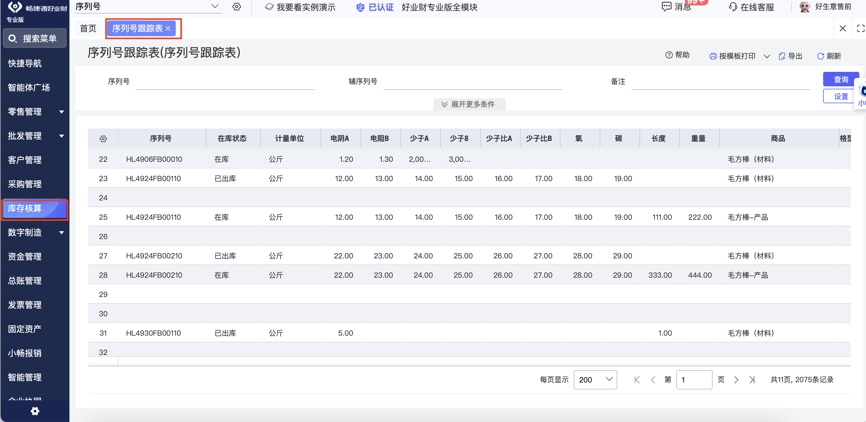 启用序列号管理: 在「物料档案」中,为服务器、交换机等核心硬件设备勾选“启用序列号管理”,并设置为“严进严出”。