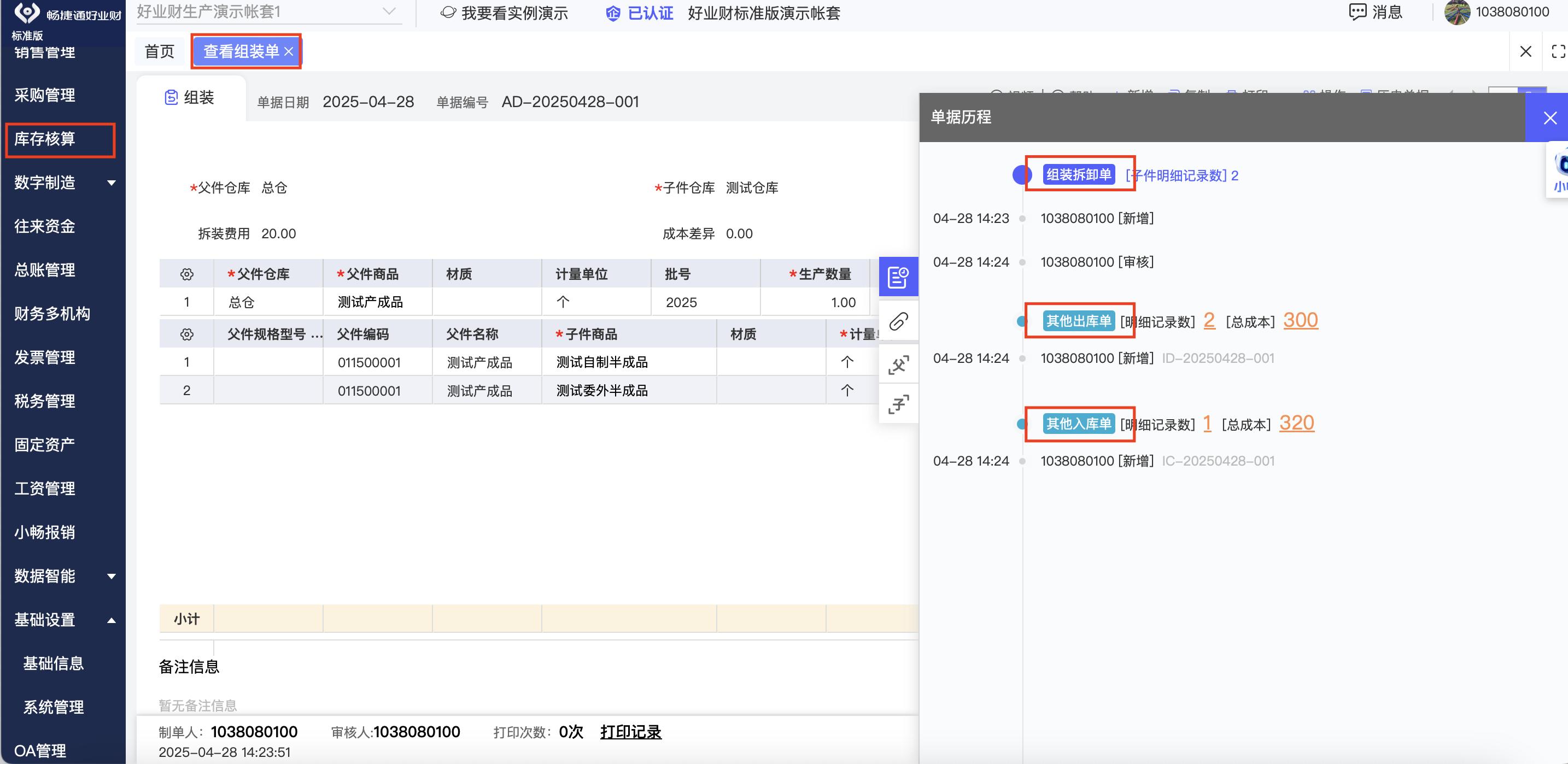简易生产管理: 用“组装单”替代复杂的生产模块。在一张组装单上,即可清晰记录生产一个“成品”所耗用的各种“原材料”及其数量,系统自动将材料成本归集到成品中,完美解决了简单生产场景下的成本核算难题。