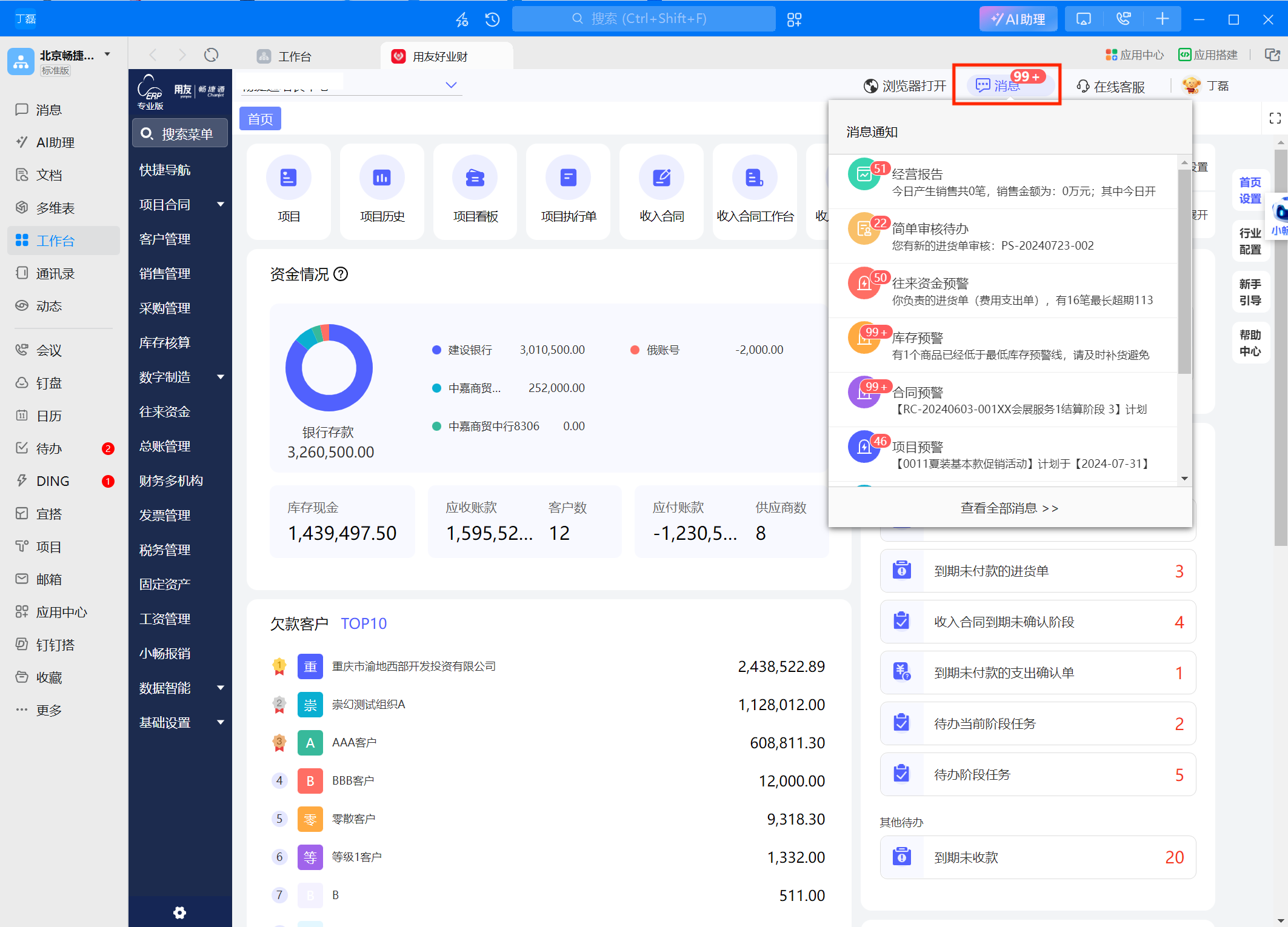 项目型业务:走“收入合同 → 收入确认单 → 收款单”流程,并结合“材料出库单”来核算项目材料成本。两条业务线既独立清晰,又能统一关联到项目,进行全面的利润分析。