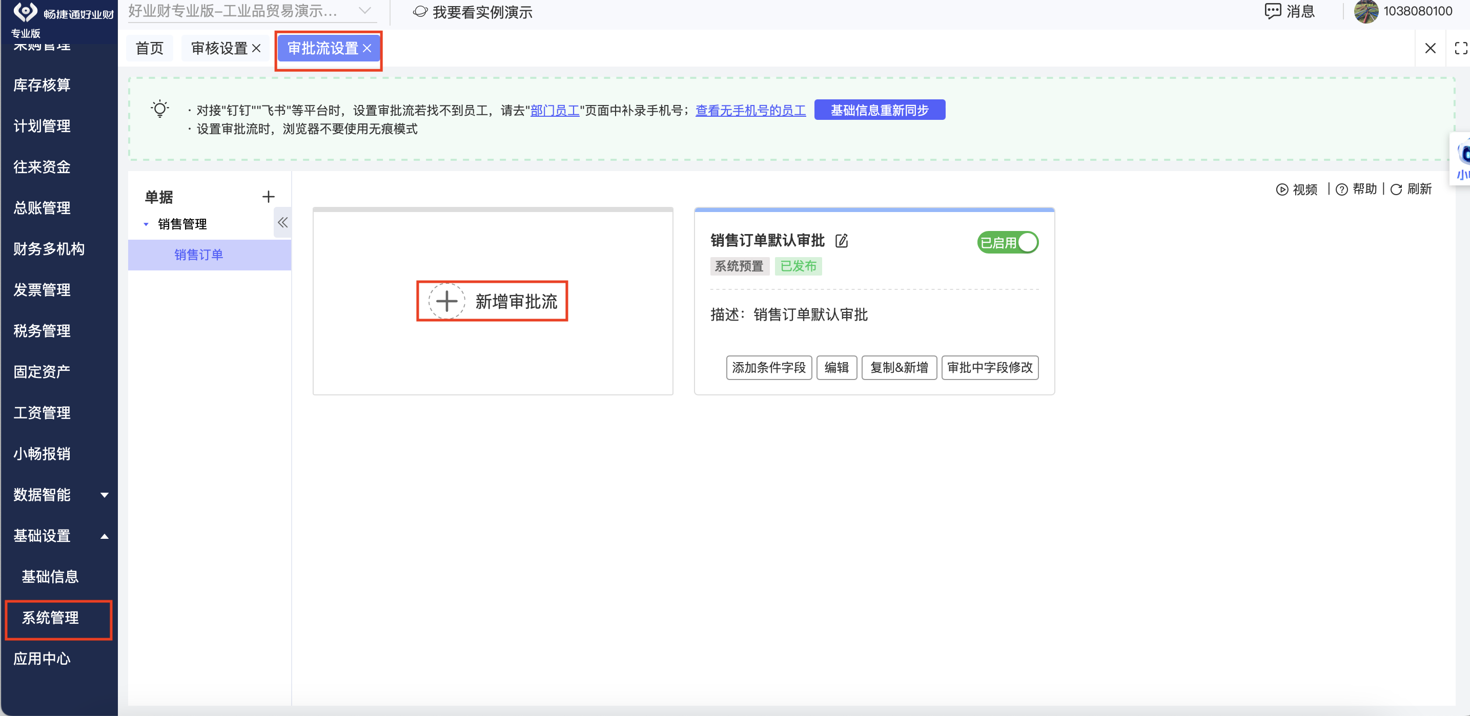 配置:在【审批流设置】中,为付款单、销货单、发票等各类单据设置灵活的审批流程。