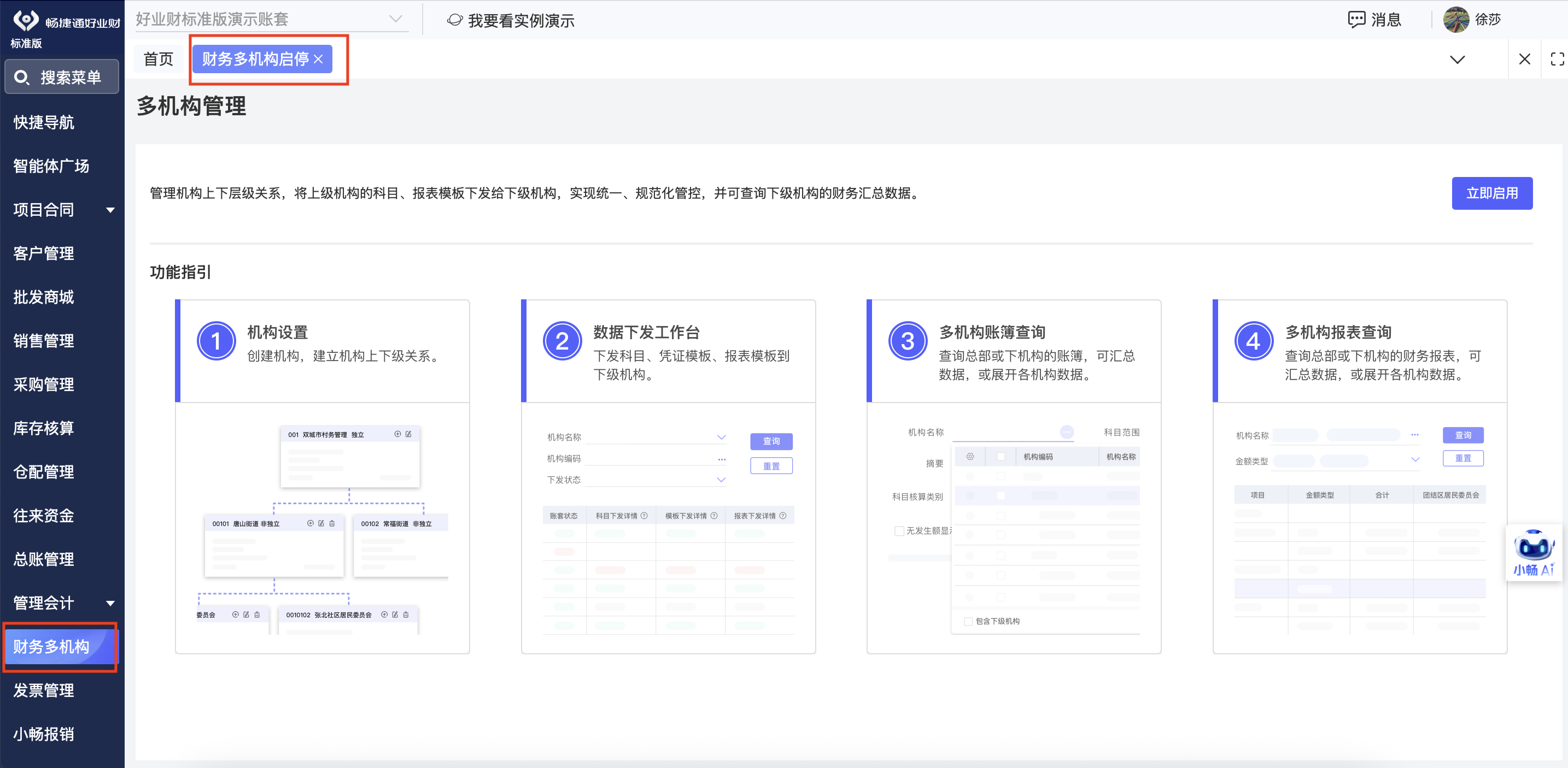 配置:在好业财中,将四家独立公司设置为四个独立的“部门”。