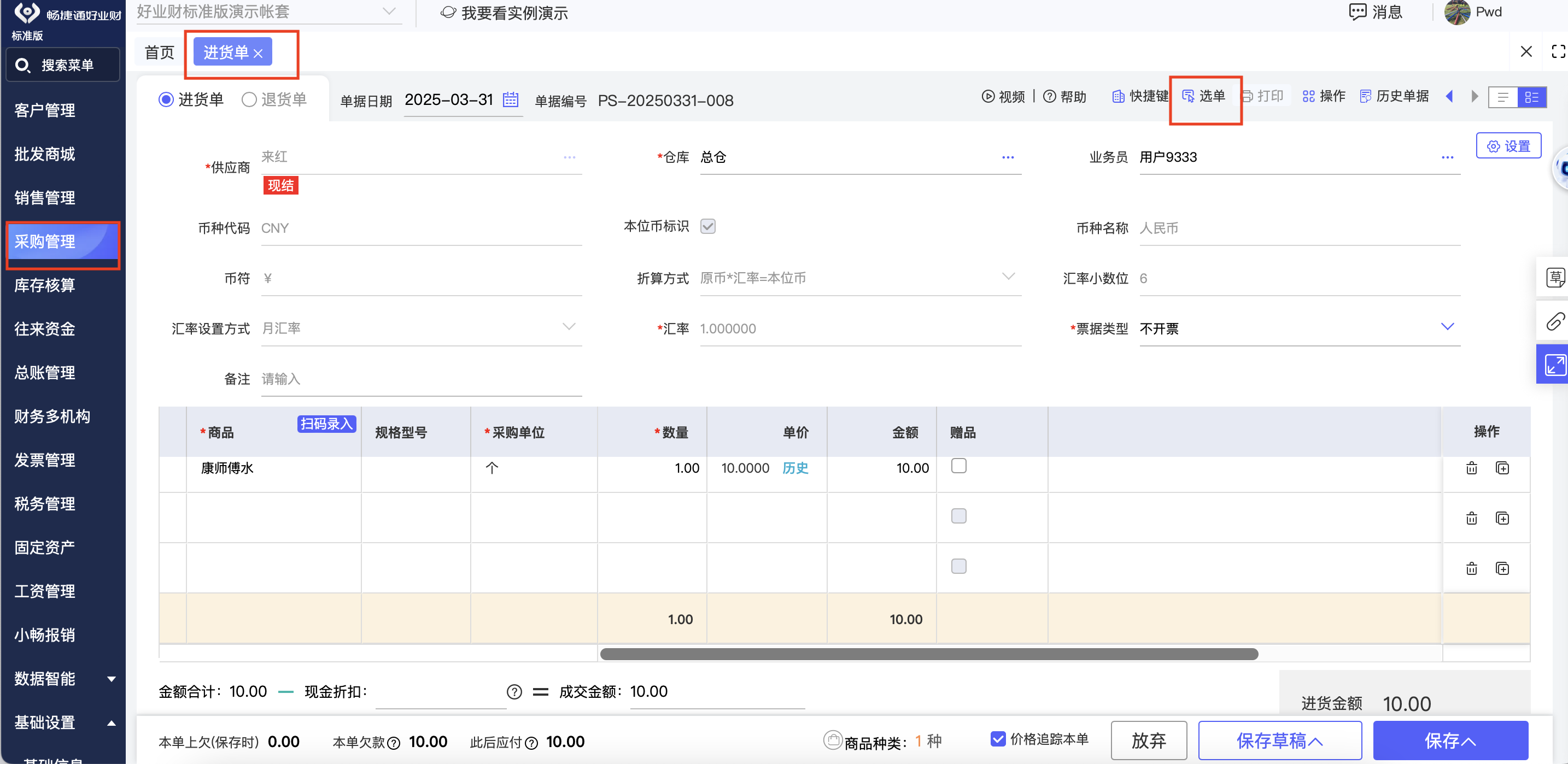 厂家返货: 收到厂家返还的货品时,做一张【进货单】正常记录来货数量和价值。再做一张0金额的【付款单】,将【进货单】与【其他收入单】进行勾稽核销。差额部分可通过“现金折扣”处理。整个过程账务清晰,资金、货物、往来形成完美闭环。