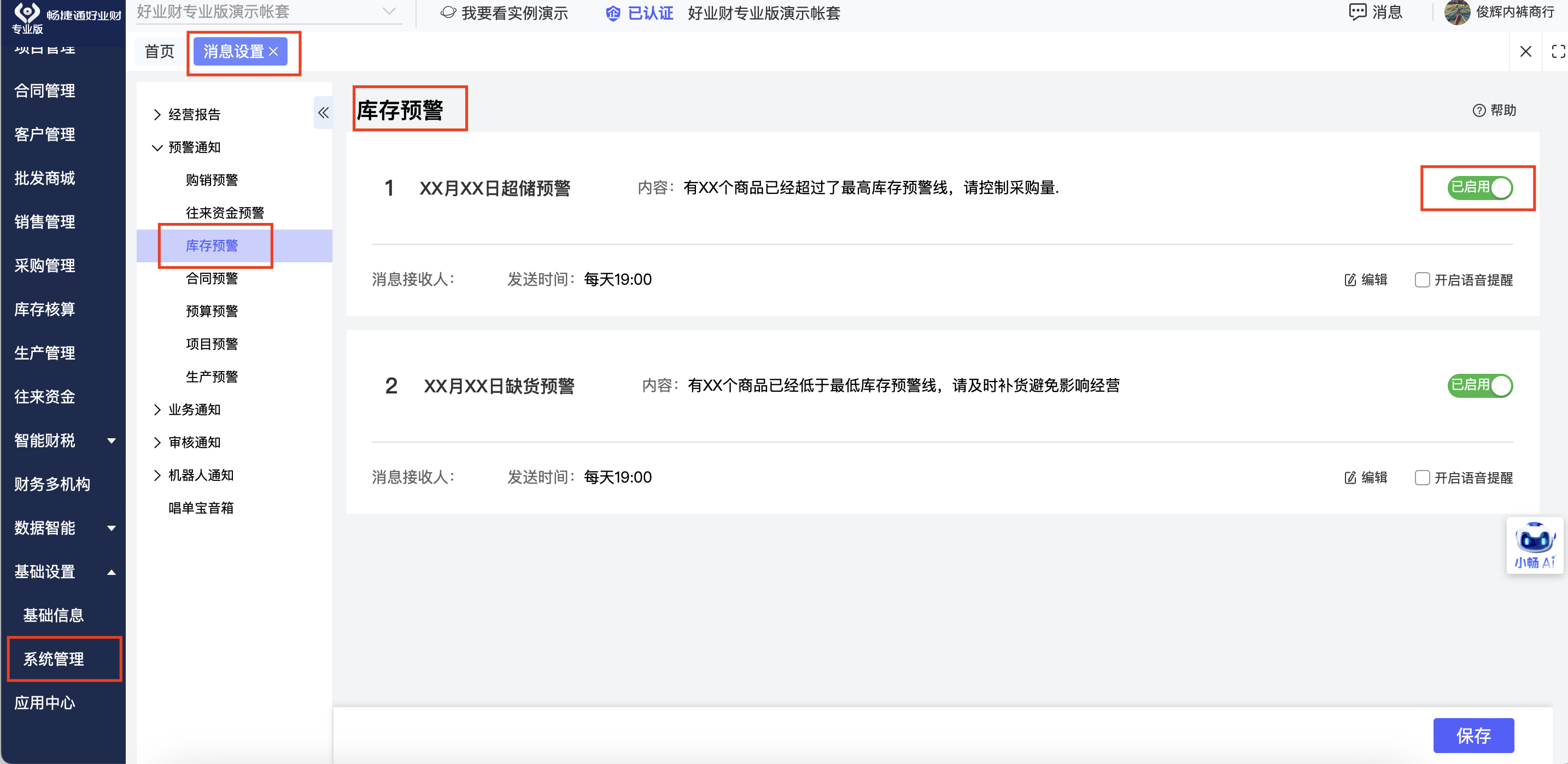 库存预警: 设置原材料和成品的最低、最高安全库存。当库存低于预警线时,系统自动发送消息提醒采购或生产人员,避免缺料停产;当库存过高时,提醒管理层,防止资金积压。